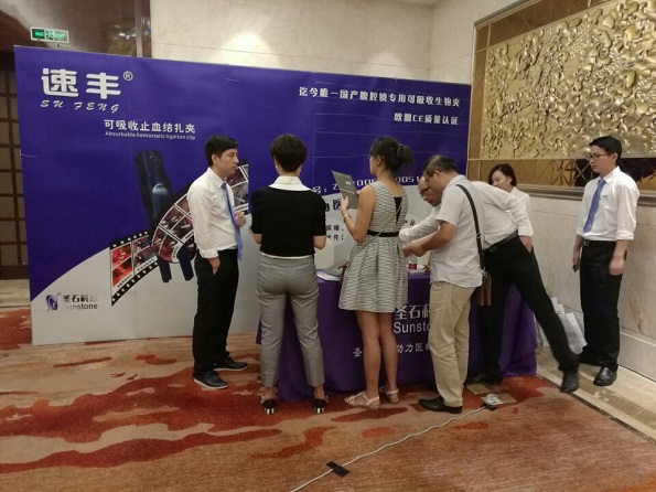 此次大会,我公司也积极参与并通力协作。会议期间,专家就速丰?可吸收止血结扎夹在普外科“特殊部位腹腔镜肝切除”及妇科“腹腔镜下深部内异灶剔除术”的临床应用作了专题介绍。会议间隙,我公司展位上前来进行产品体验与应用交流的与会医师络绎不绝。