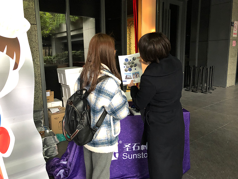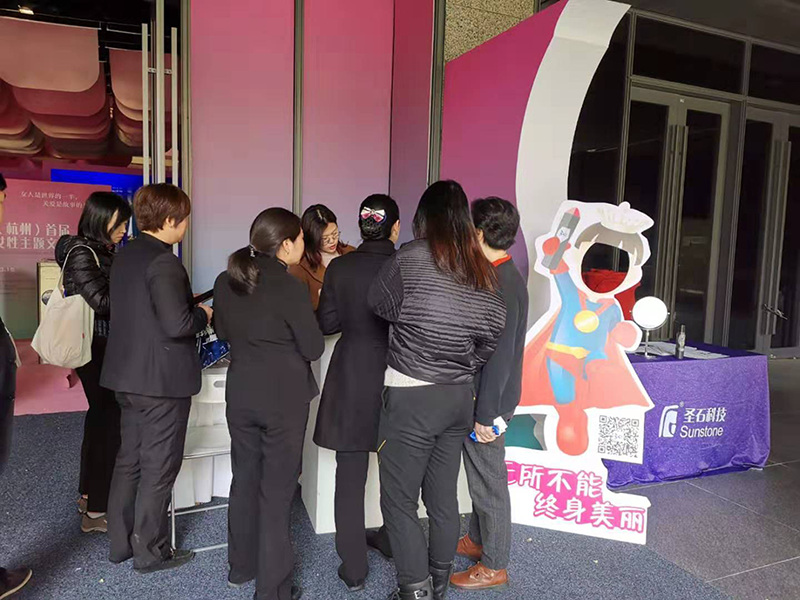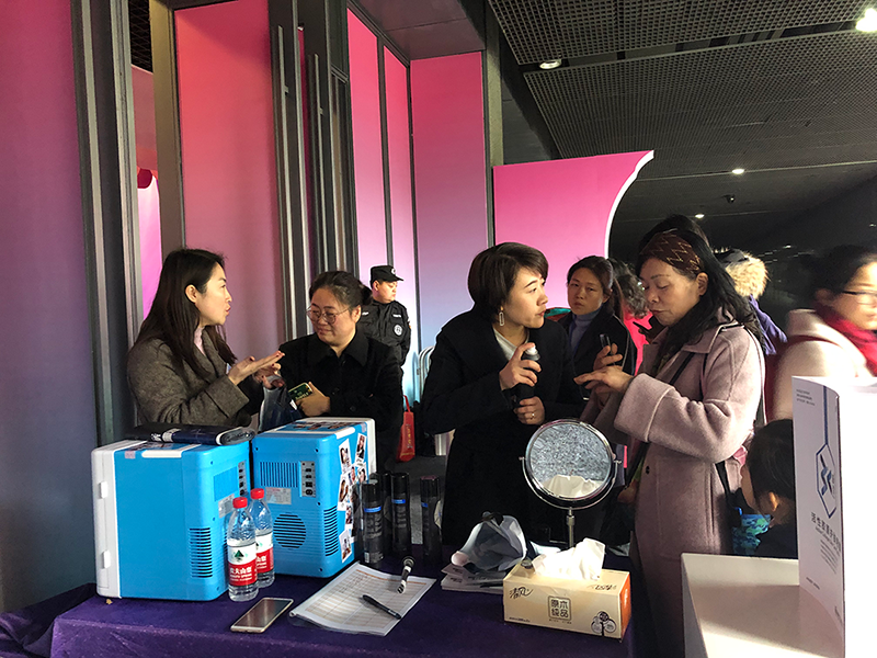 圣石科技受邀参与此次公益活动,公司企划部、公关部负责人周晓女士、梅娜女士带队协力,并为前来参与活动的市民朋友每人公益派送正装姗渡?活性胶原护肤喷雾一支。