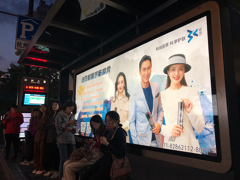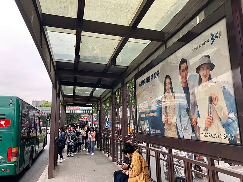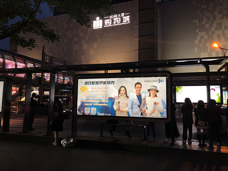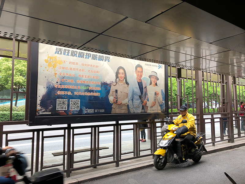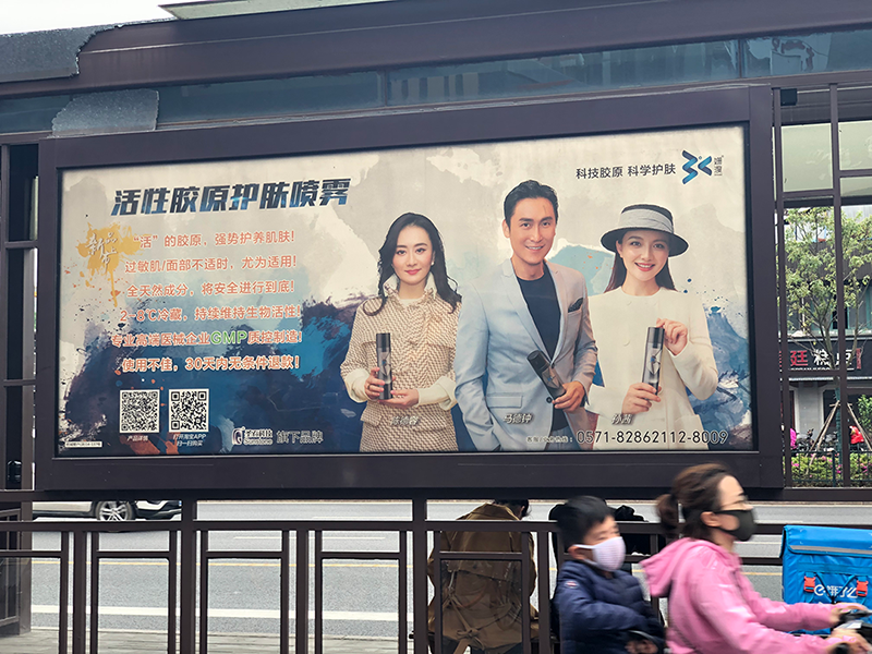 2019春夏之交,圣石科技旗下科学护肤品牌姗渡活性胶原护肤喷雾产品线下广告在杭城各大公交站点陆续启动。