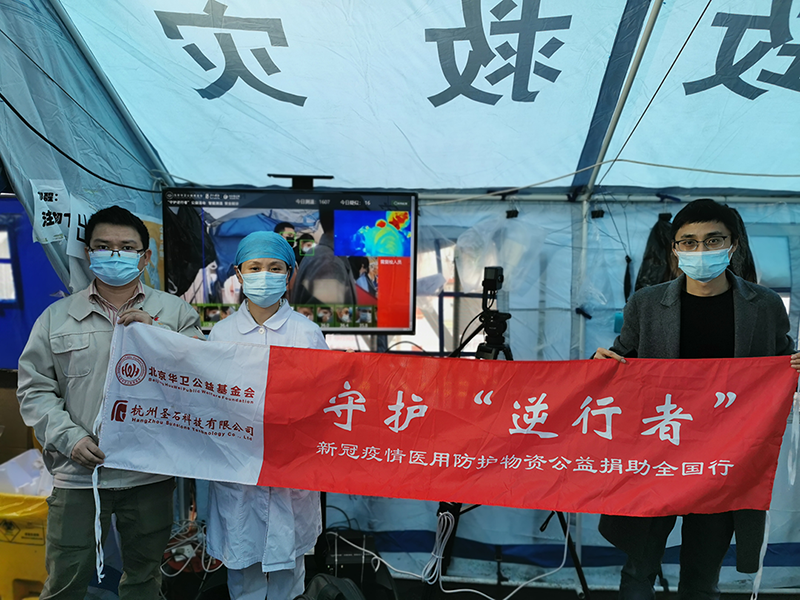 “守护逆行者”智能小程序于春节后在百度APP正式上线,平台一方面征集发布全国重点医院各类应急物资需求,另一方面无偿发布相关产品、产能信息,助力应急物资保障。“守护逆行者”上线仅几天,全国百余家承担重点防疫任务的医院上传了大量的需求信息,圣石科技积极响应,第一时间向北京华卫公益基金会捐款500万元,并组织安排圣石科技各分公司员工作为公益志愿者远赴全国,向武汉协和医院、武汉中南医院、荆州市第一人民医院等全国百余家大型医疗机构用于抗击新冠肺炎医护人员紧缺防护用品以及先进AI多功能智能测温系统的采购捐助。积极履行社会责任既是圣石义不容辞的使命,也是企业长期以来坚持的信念,面对疫情,圣石科技全体员工愿与社会各界共克时艰,守护生命。