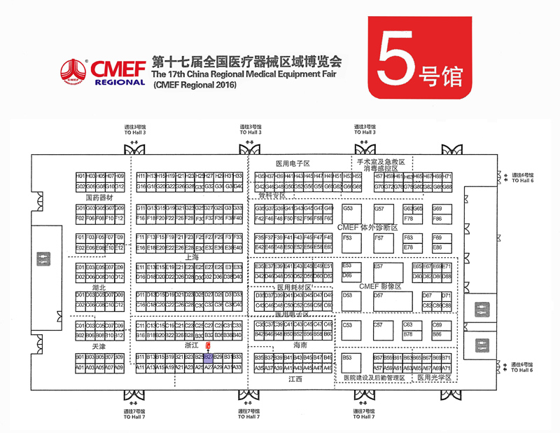 我公司将于2016年7月8日至10日参加在贵阳国际会议展览中心(长岭北路)举办的第十七届全国医疗器械区域博览会。展位位于H5馆B27号 (详见附图)。